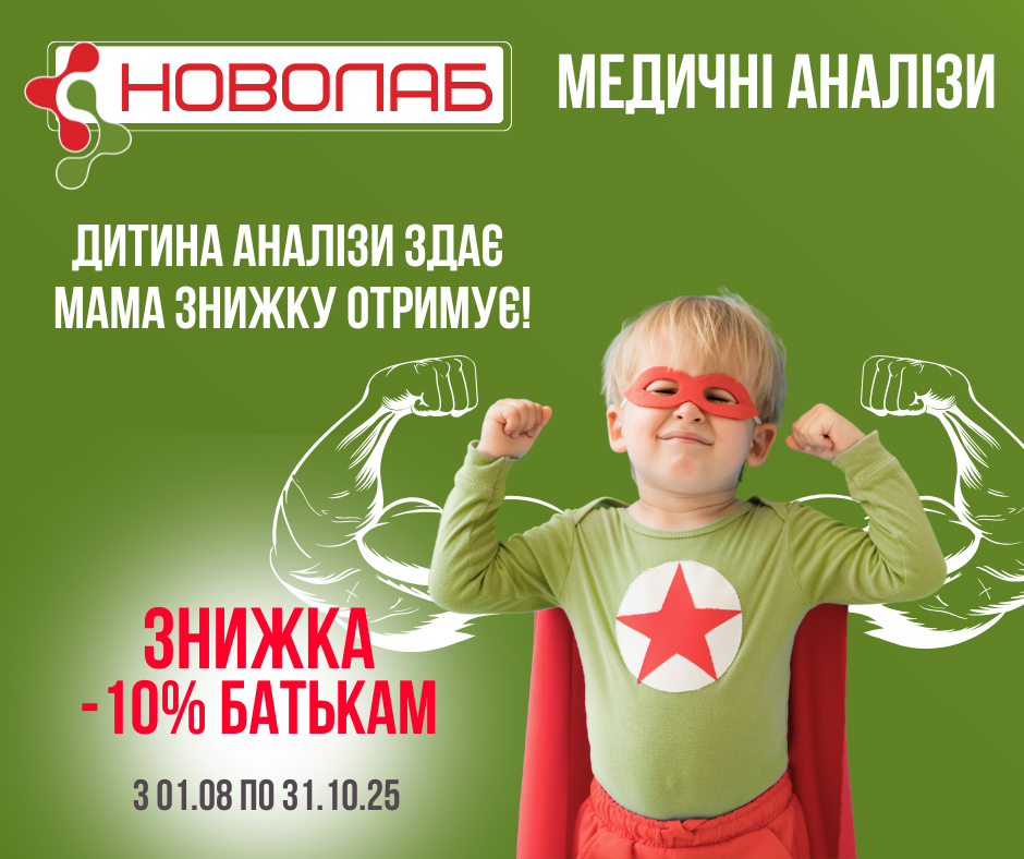З 1 серпня до 31.10.2025 даруємо 10% знижки на аналізи для одного з батьків або близьких у Новолаб.